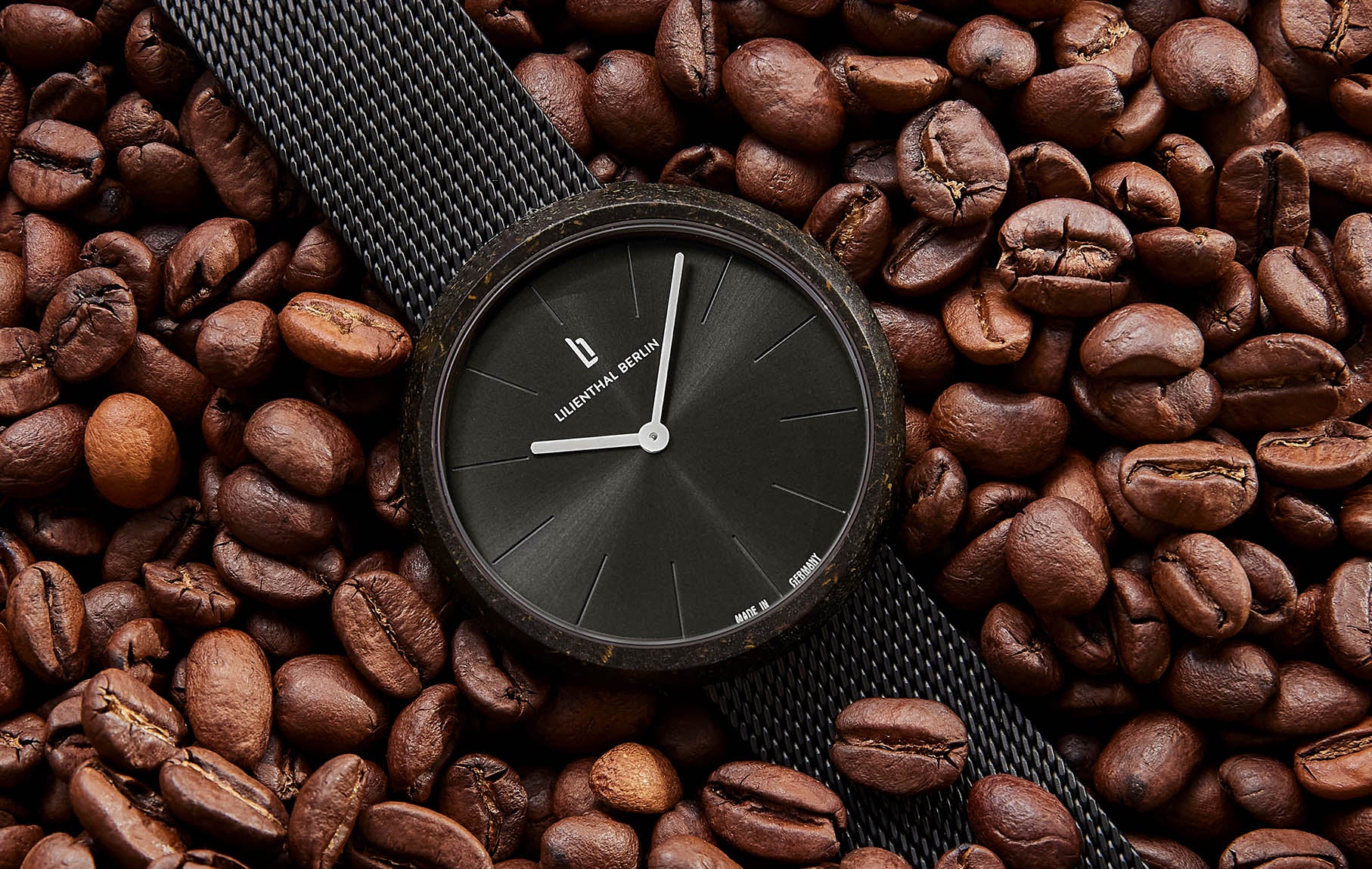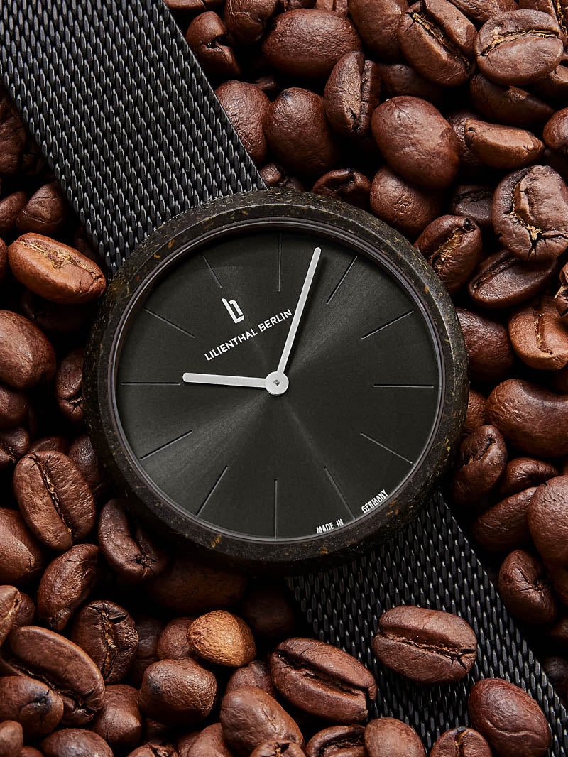 We present the world's first watch made from recycled coffee. When it comes to sustainable living, the Coffee Watch is a true innovation, featuring a case made of used grounds from Berlin cafés and roasting houses, transformed into an extremely durable material through a complex upcycling process. The shapes, colors, texture, and even a subtle aroma reveal what the watch is made of – and it's completely carbon-neutral to boot. All these things make it a genuinely loving tribute to the greatest of all hot drinks!