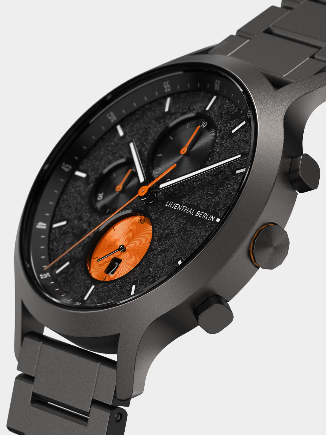 Limited to 3,333 pieces, the Chronograph Volcano II is bursting with primal energy! A jet black dial with a lava style structure, bright orange details, glow-in-the-dark Superluminova elements, and shimmering metallic hands come together to create a truly blazing specimen. Beneath the volcanic surface lies high-precision technology: the Chronograph movement can measure time to the nearest tenth of a second.