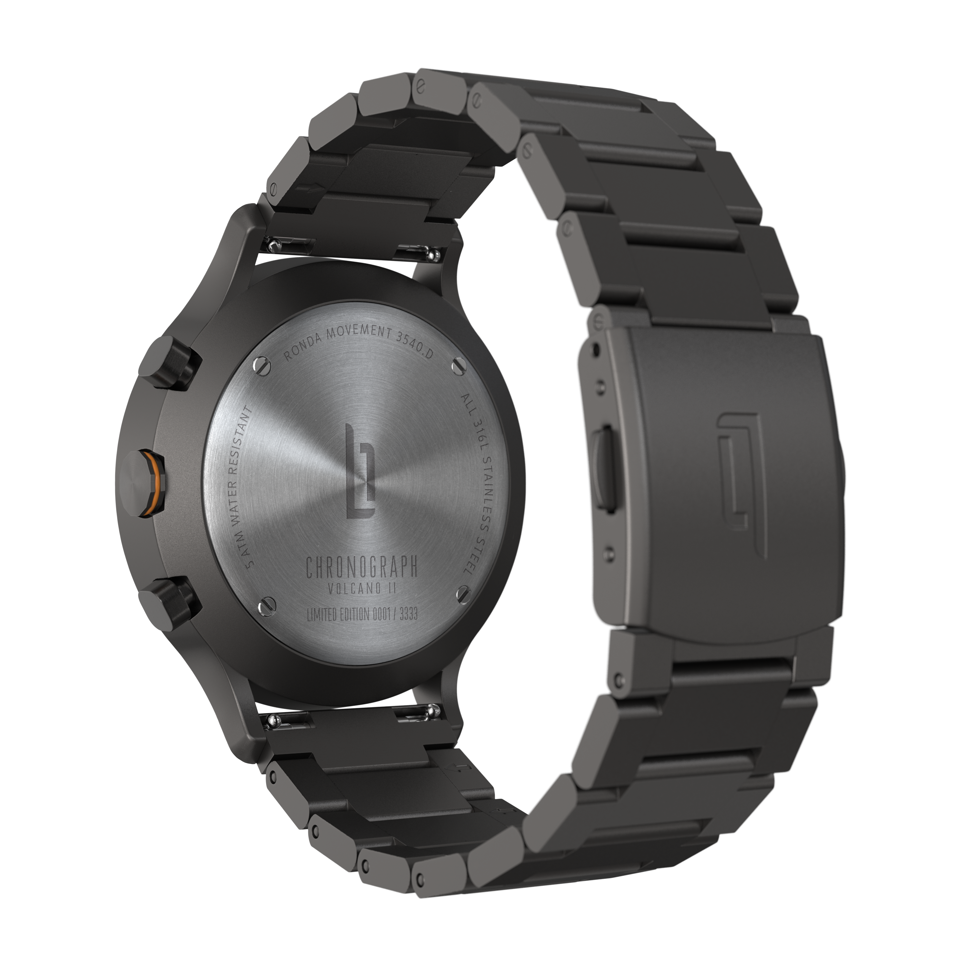 Fortunately, a rare occurrence: As exciting as volcanic eruptions sound, it's nice to know they don't happen all the time! The Chronograph Volcano II is also pretty rare: only 3,333 watches have been produced for this series. What's more, each of these watches is unique thanks to the serial number engraved on the back of the case and the certificate found in the box.