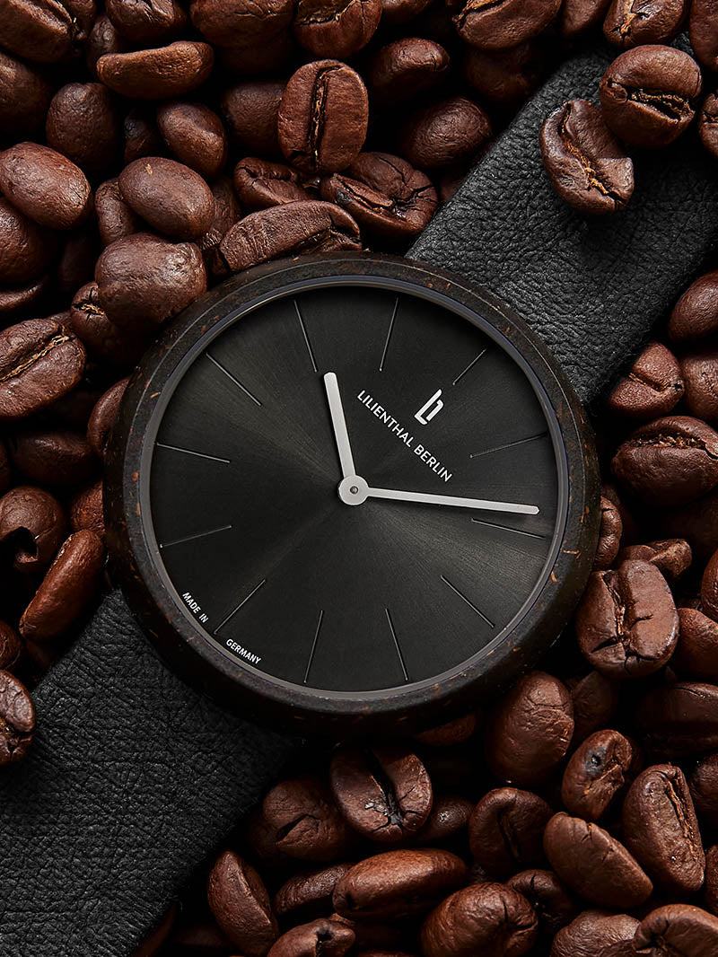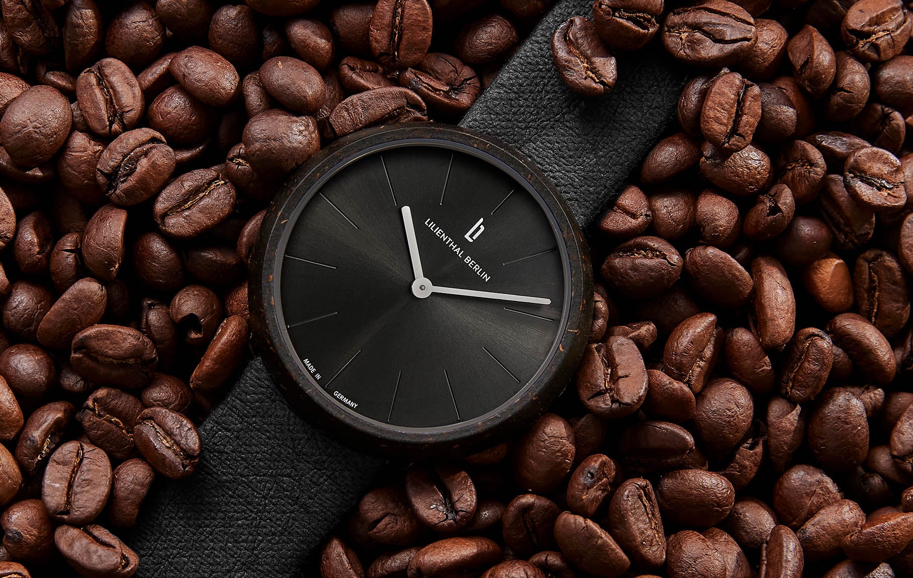 We present the world's first watch made from recycled coffee. When it comes to sustainable living, the Coffee Watch is a true innovation, featuring a case made of used grounds from Berlin cafés and roasting houses, transformed into an extremely durable material through a complex upcycling process. The shapes, colors, texture, and even a subtle aroma reveal what the watch is made of – and it's completely carbon-neutral to boot. All these things make it a genuinely loving tribute to the greatest of all hot drinks!