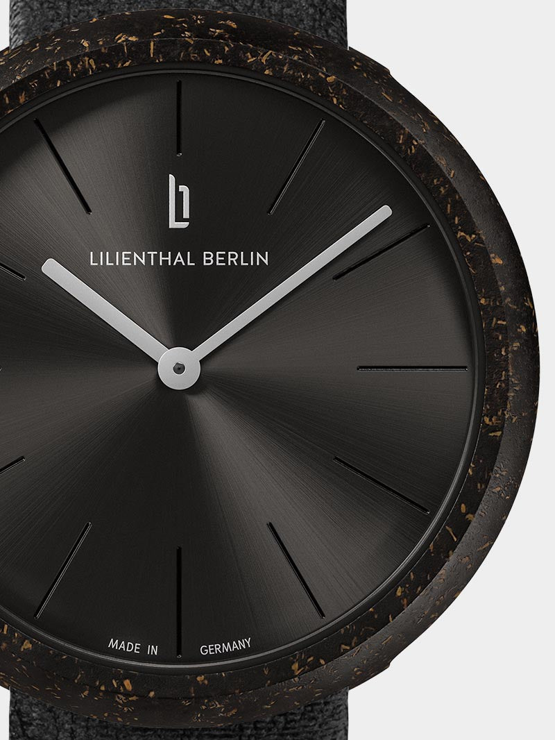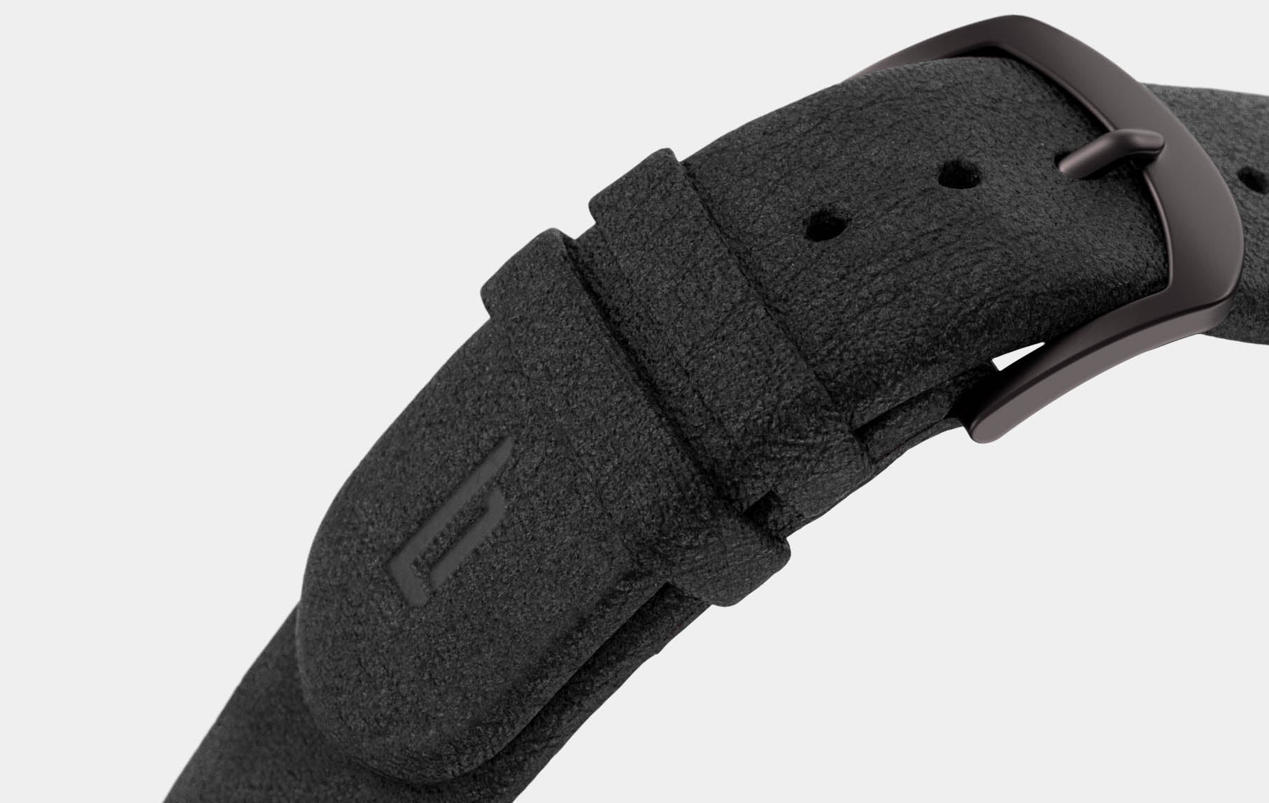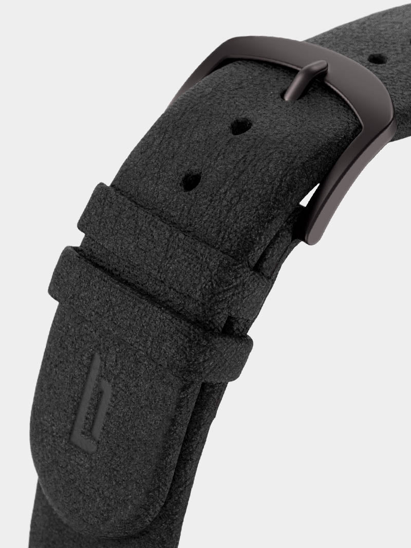 Stylish, resilient and vegan. A mix of cellulose fibers and latex is used for the outer material of the strap. It looks like leather, feels like leather, and yet, it has an entirely unique character. The strap is lined with a cork textile to give it the necessary stability and excellent wear comfort. And thanks to the quick-release mechanism, the strap can be changed in no time.