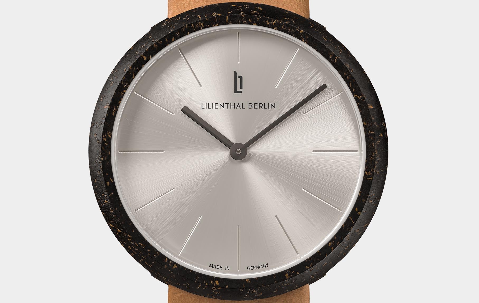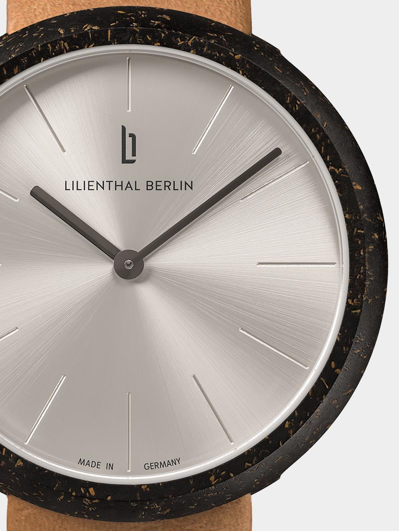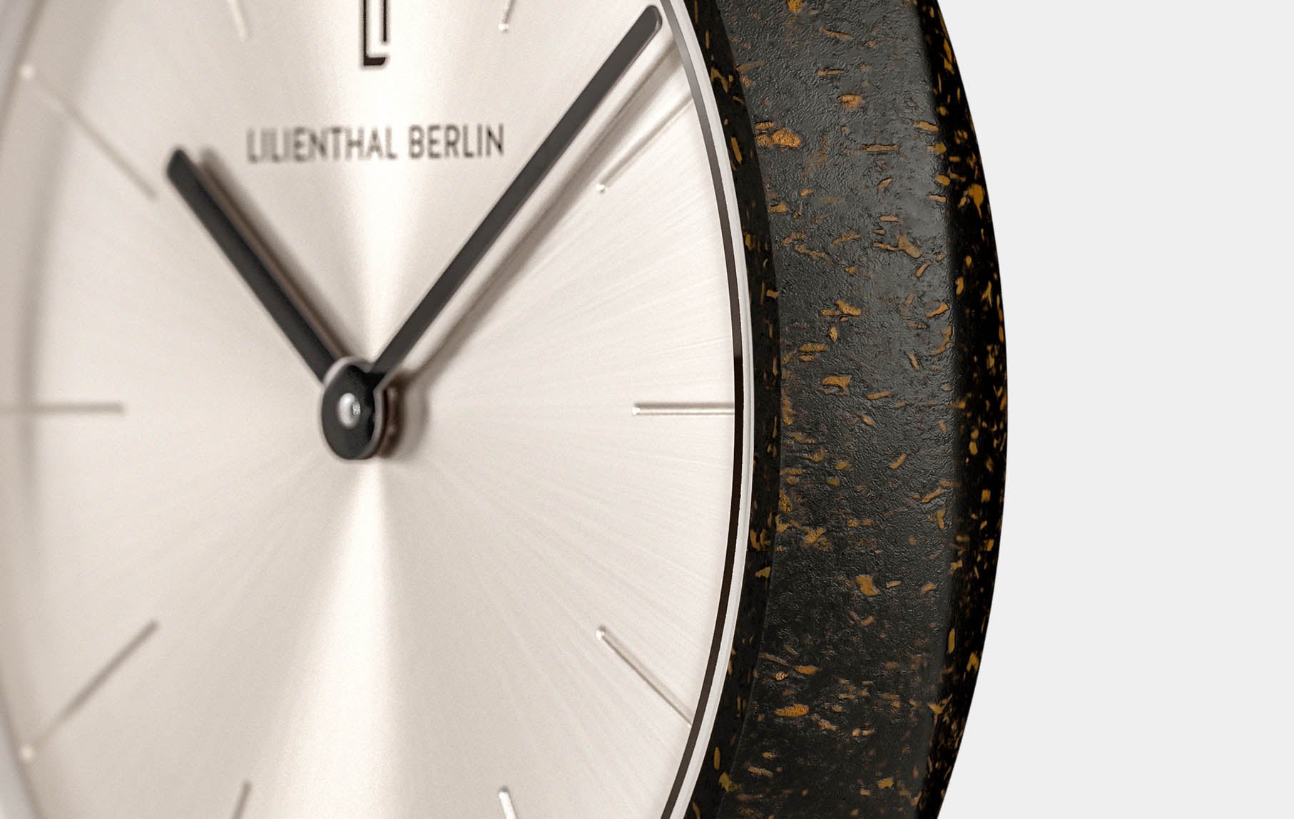 Made of recycled coffee grounds, the watch case is reminiscent of a coffee bean or a coffee cup, depending on how you look at it. The especially round, minimalist appearance of the watch was created using a special trick: the crown is completely recessed into the case back. The pure, straightforward design philosophy is greatly enhanced by the clean, silvery sunburst pattern of the watch face and neatly engraved hour marks.