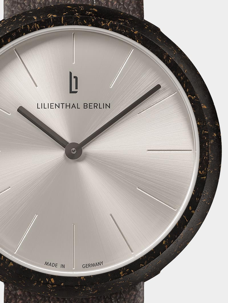 Stylish, resilient and vegan. A mix of cellulose fibers and latex is used for the outer material of the strap. It looks like leather, feels like leather, and yet, it has an entirely unique character. The strap is lined with a cork textile to give it the necessary stability and excellent wear comfort. And thanks to the quick-release mechanism, the strap can be changed in no time.