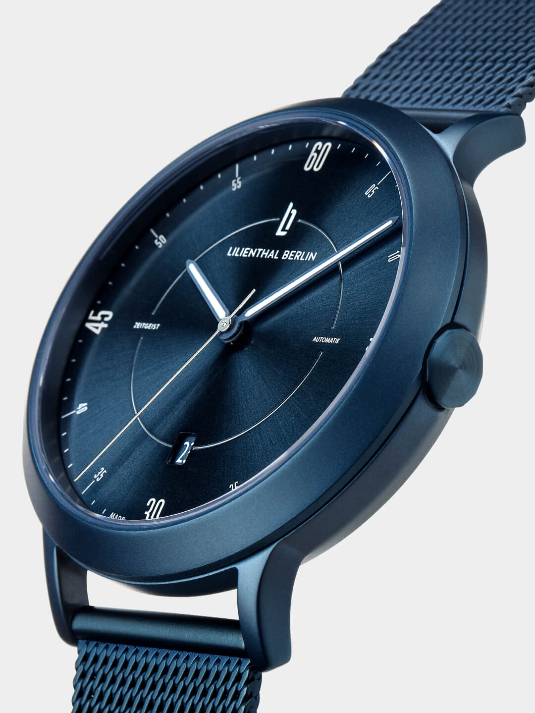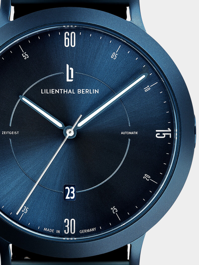 The Zeitgeist Automatik All Blue incorporates all the best features. A Swiss Automatik movement. ‘Made in Germany’ quality. A glass case back. Superluminova-coated hands. Pure sapphire glass. And, of course, a multi-award-winning design finished in exquisite blue. And because the Zeitgeist Automatik easily combines real luxury with an urban appeal, it has been chosen as 2020 Watch of the Year in Germany!