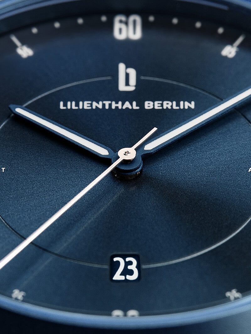 The Zeitgeist Automatik is powered by the Swiss Automatik caliber R150 by Ronda. Twenty-five jewels ensure the smooth running of the movement. The Zeitgeist also includes a date display. Its dark galvanized rotor is engraved with the Lilienthal Berlin logo for an extra touch of flair. And to show off its intricate gears, the Zeitgeist features a stunning glass case back.