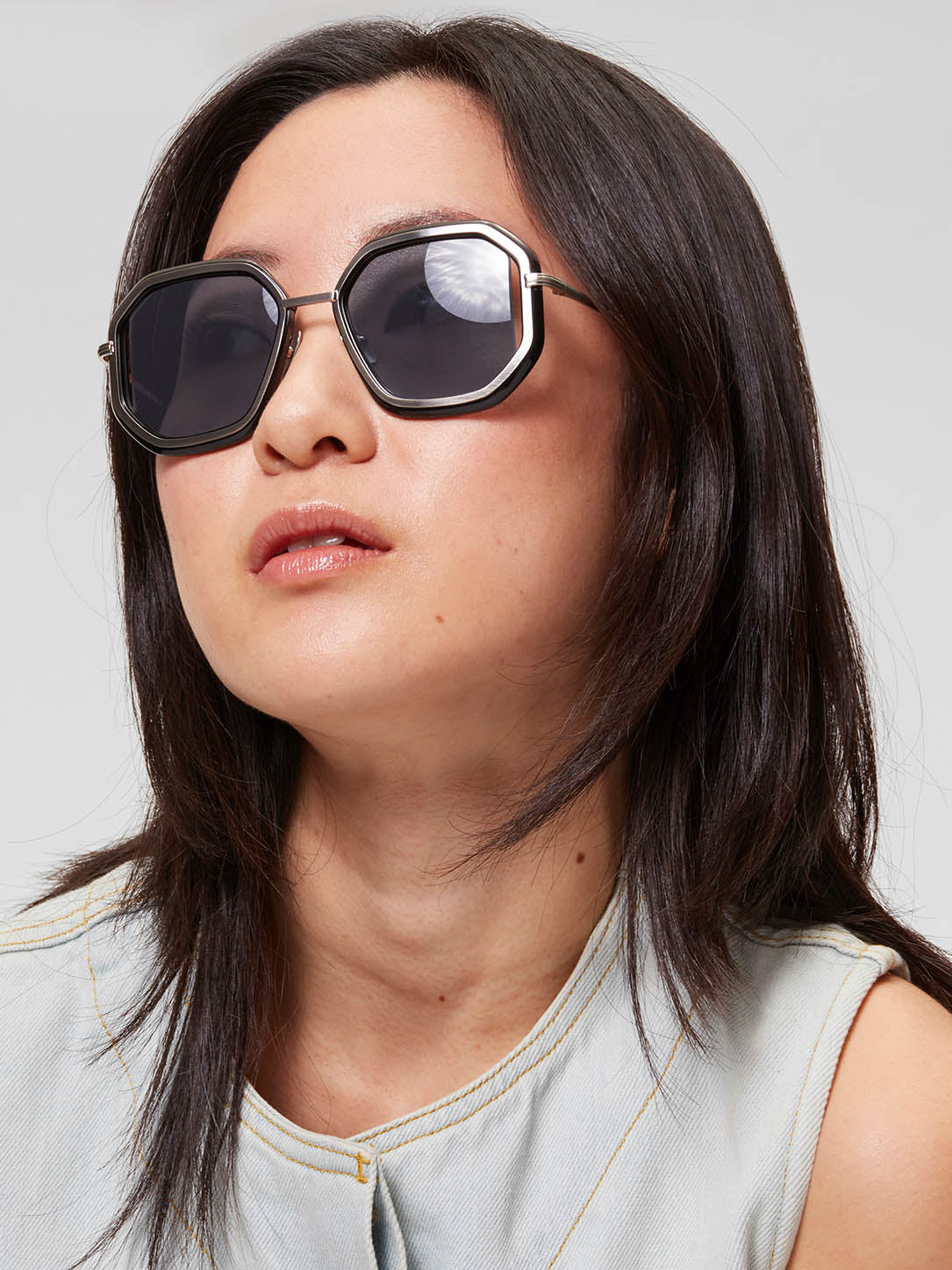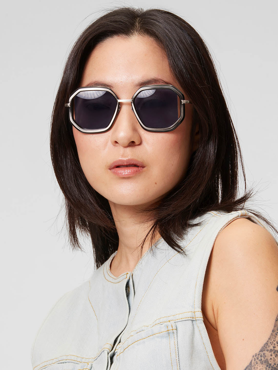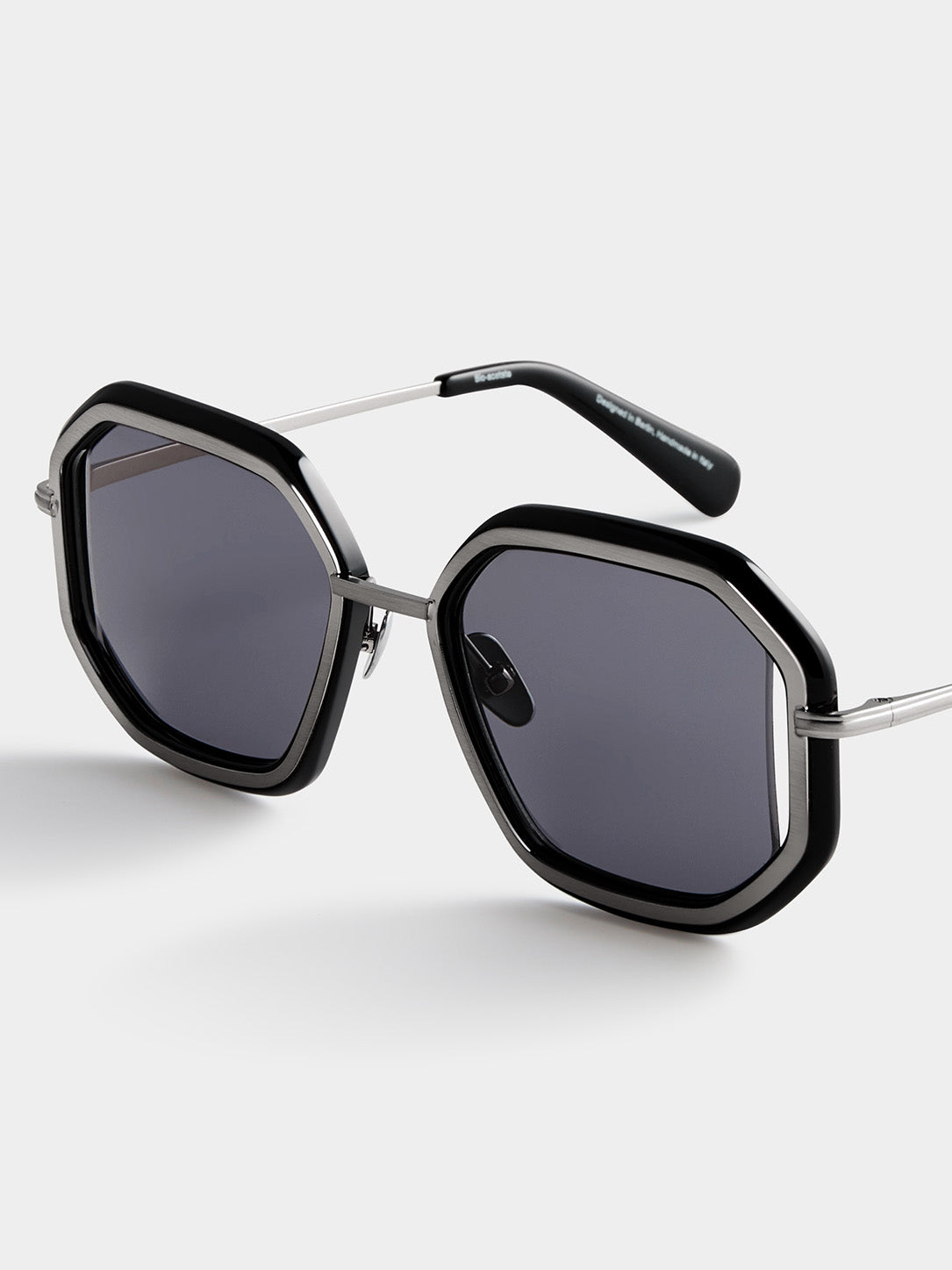 The Deep Disco dances to its own beat – and does so with a passion and coolness that is unparalleled. The heptagonal, slightly angled lenses and the unusual frame structure make this sunglasses a highly individual statement piece. Très Chic! The premium vibe is accentuated by 100% UV protection, top quality "Handmade in Italy," and a sustainable background.
