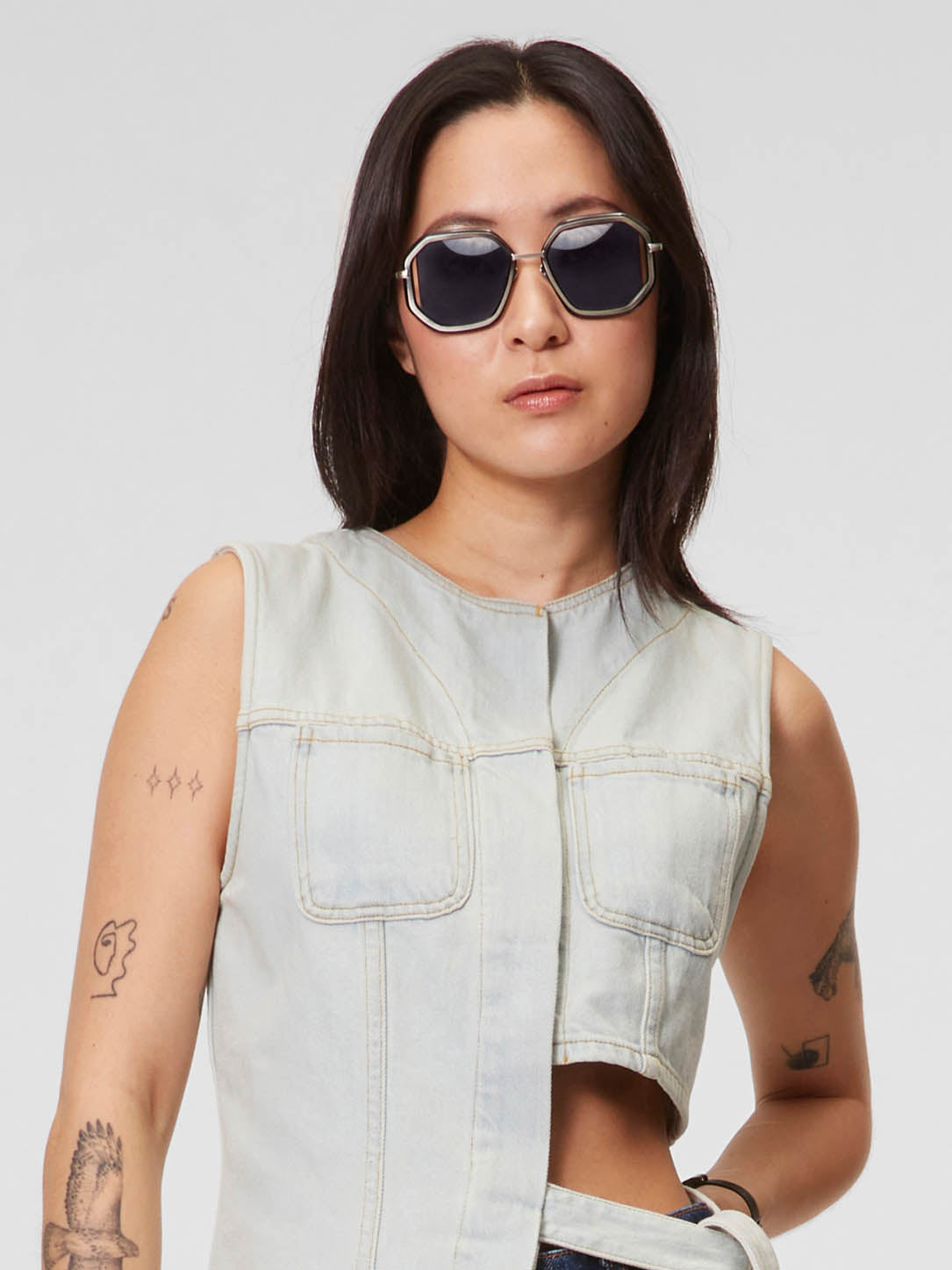 Sometimes, having one less angle really makes a difference: the octagonal style is a fixed element in eyewear design. And here, Deep Disco makes its own move! With lenses seven instead of eight angular, slightly cut, framed in stainless steel and surrounded by bio-acetate, these sunglasses are definitely an eye-catcher! And a great advantage of this geometry: a truly high wearing comfort!