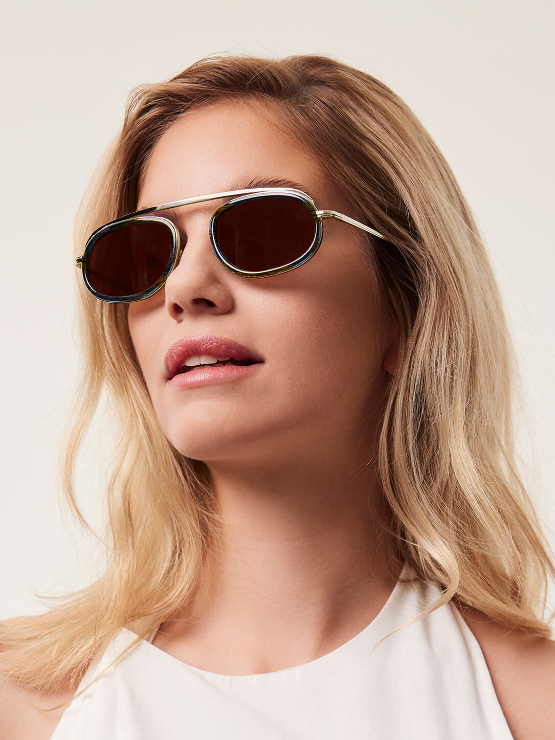 Driven by novelty and uniqueness. Intricate and determined. Prepared for advancement. With its contemporary interpretation of timeless aviator sunglasses, the Complextro defies categorization and establishes its own identity. Observe its distinctive design, featuring a singular arch connecting the lenses. Meanwhile, these high-end glasses guarantee 100% UV protection, renowned "Handmade in Italy" craftsmanship, and a commitment to sustainability.