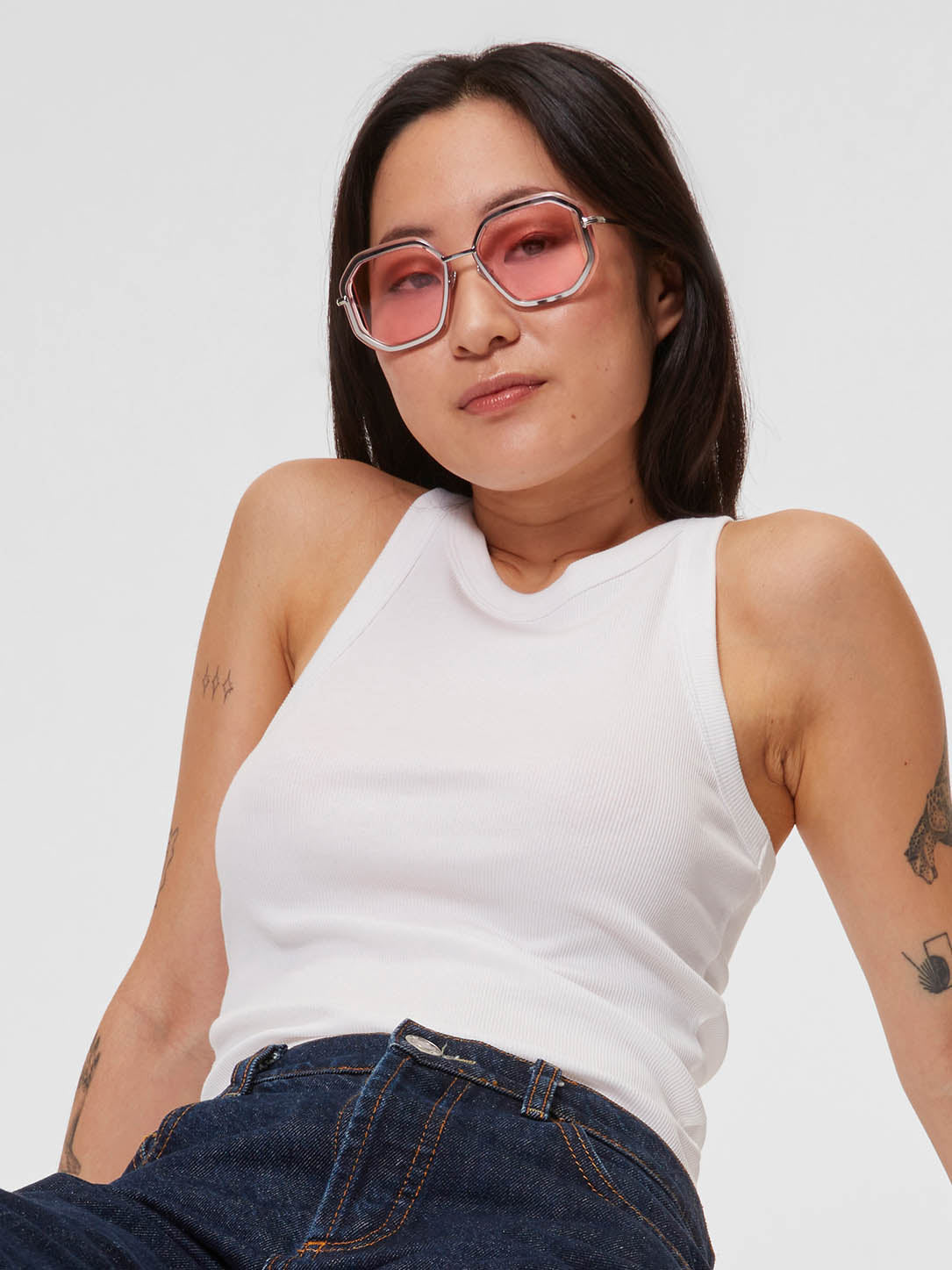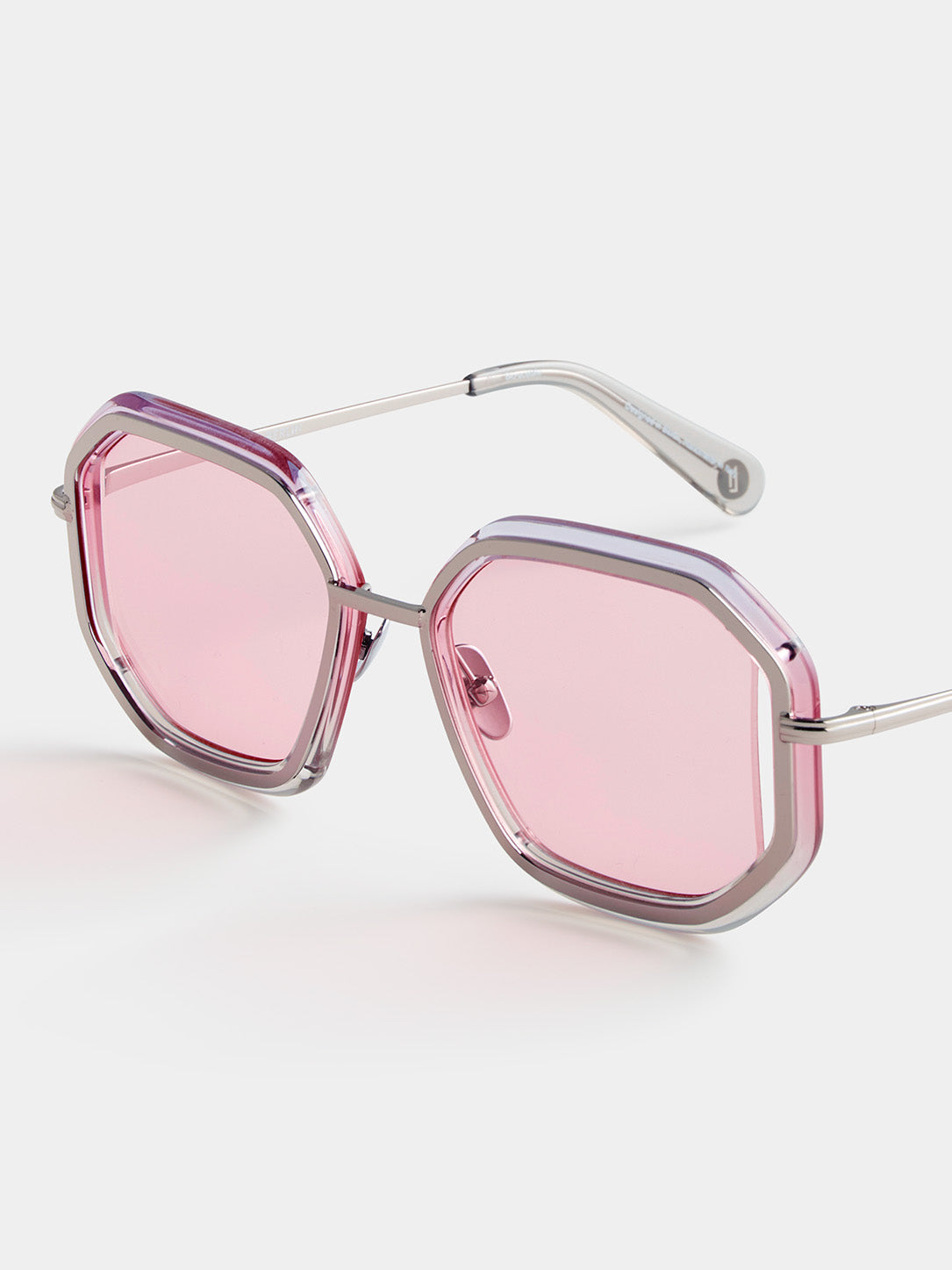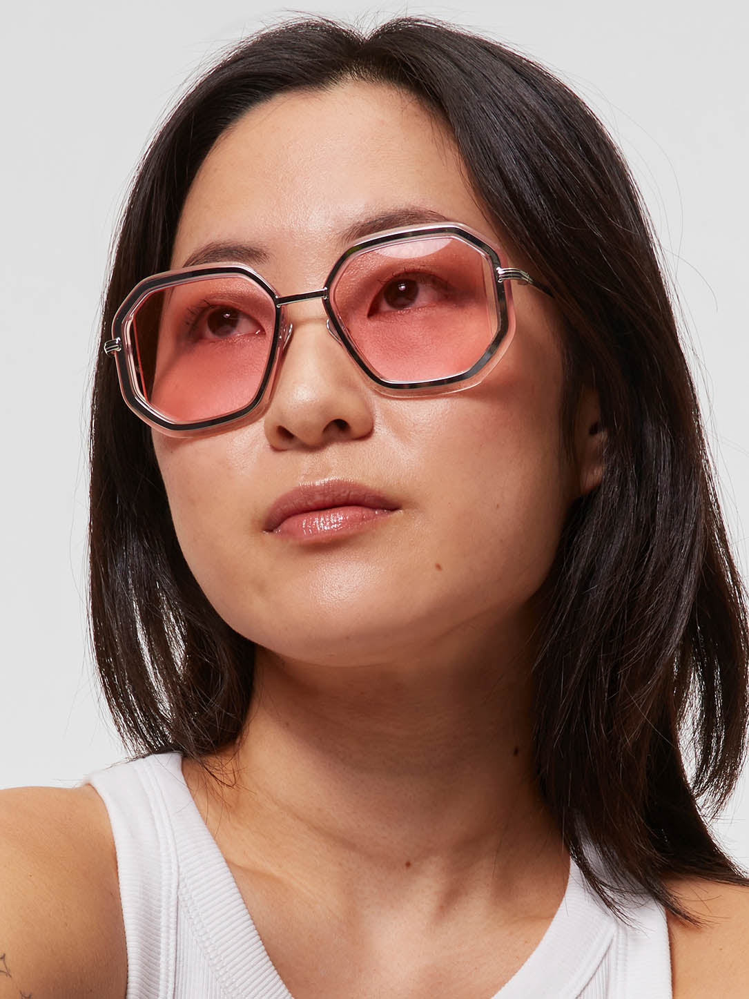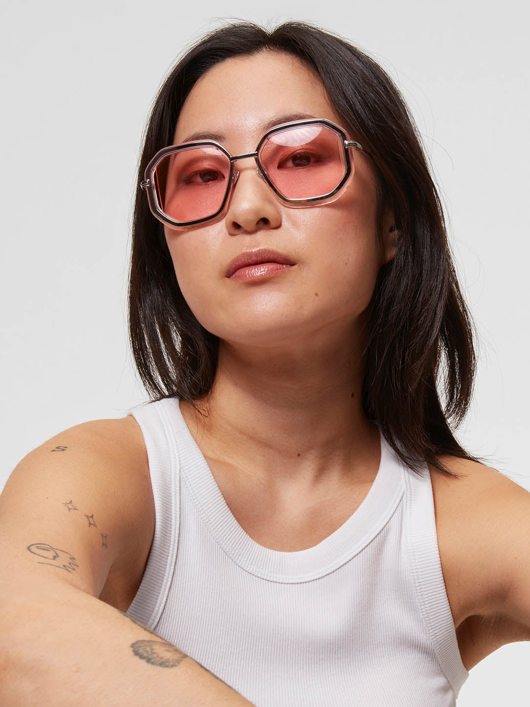 The Deep Disco dances to its own beat – and does so with a passion and coolness that is unparalleled. The heptagonal, slightly angled lenses and the unusual frame structure make this sunglasses a highly individual statement piece. Très Chic! The premium vibe is accentuated by 100% UV protection, top quality "Handmade in Italy," and a sustainable background.